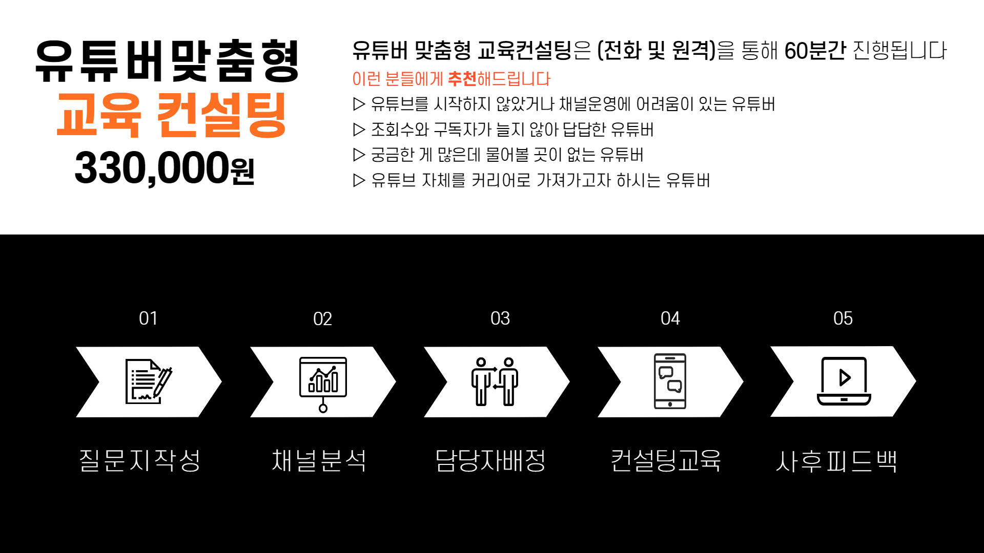 본 서비스는 유튜브 교육인증 전문가가 책임관리제로 운영하고 있는 컨설팅프로그램입니다.